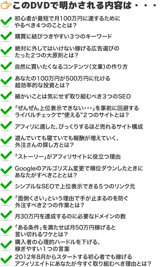 アフィリエイト塾の塾長によるセミナーDVDです。